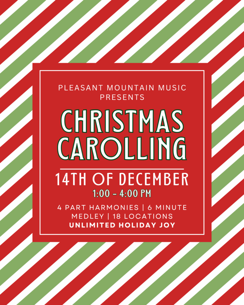 Pleasant Mountain Music plans to, once again, share seasonal joy and song with our one-of-a-kind travelling carollers event around the South Granville Neighbourhood. This year, we return with a classic medley of seasonal music arranged by PMM’s very own Chersea! Songs include but are not limited to Mistletoe, White Christmas, Sleigh Ride, so if you want to find out what else is in the mix, you’ll just have to come by on Dec 14th! Check us out at one of the dozen locations we’ll be performing at, including shops, restaurants, and cafes!