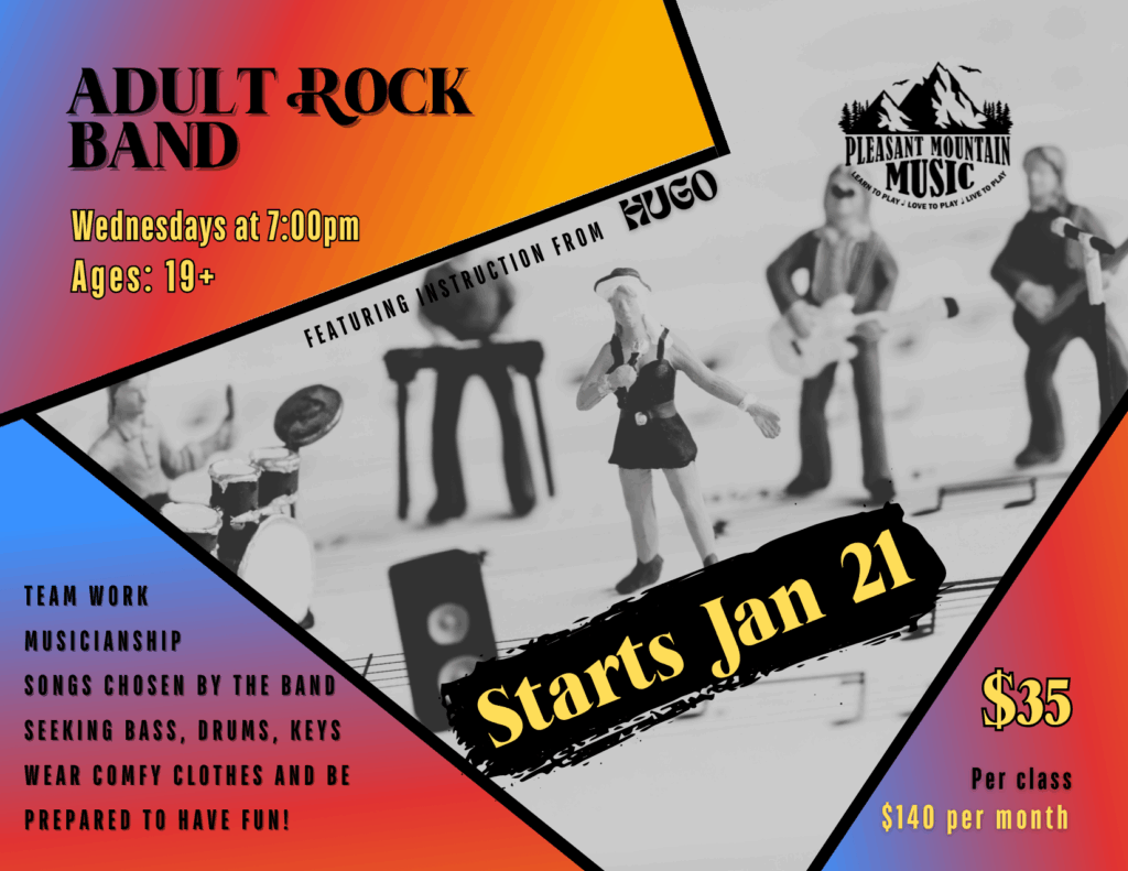 New and Existing Students can use the form below to sign up for Adult Rock Band. Our booking system will add you to the first class, we’ll add you to the rest.